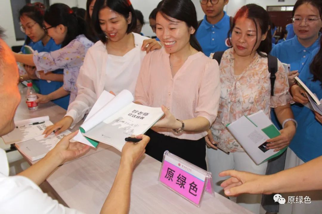 《好老师会这样做》的作者原绿色,系安阳师范学院87届校友,北京师范大学教育集团附属学校发展研究中心研究员,中国教育学会小学专业委员会副秘书长,全国知名校长,河南省最具影响力校长。原绿色首先对母校安阳师范学院表达了衷心的感谢,介绍了自己在母校安阳师范学院关怀与帮助下的成长之路,并重点介绍了把当年自己在母校给教育学院学生兼课时的讲课稿整理成这本书的情况,还深有感触地说:“好教育让人生幸福、出彩、有意义!好老师帮学生健康成长、全面成人、个性成才。”