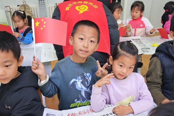 随后,志愿者结合“小英雄的故事”,用浅显的语言讲解国旗红底色的由来与五颗星的象征意义,红色种子悄然植入童心。手工制作环节将活动推向高潮,志愿者提前备好红色卡纸、黄色星星贴纸等材料,手把手指导孩子们裁剪、粘贴。孩子们神情专注,用稚嫩的小手勾勒轮廓,很快,一面面色彩鲜亮的手工国旗完成,大家举着作品相互展示,小脸上满是自豪。