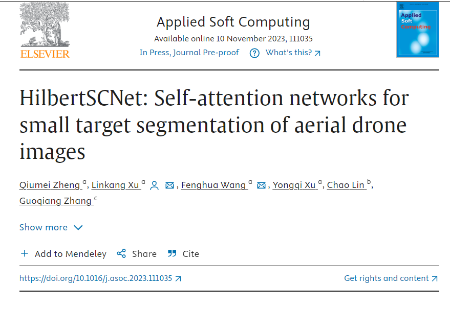 我院教师郑秋梅、硕士生徐林康在中科院大类分区2区TOP期刊《Applied Soft Cpmputing》发表题为“HilbertSCNet: Self-attention networks for small target segmentation of aerial drone images”的研究论文。《Applied Soft Cpmputing》2023年影响因子为8.7,近五年平均影响因子为7.9,为华体会体育买球 (华东)T2期刊。