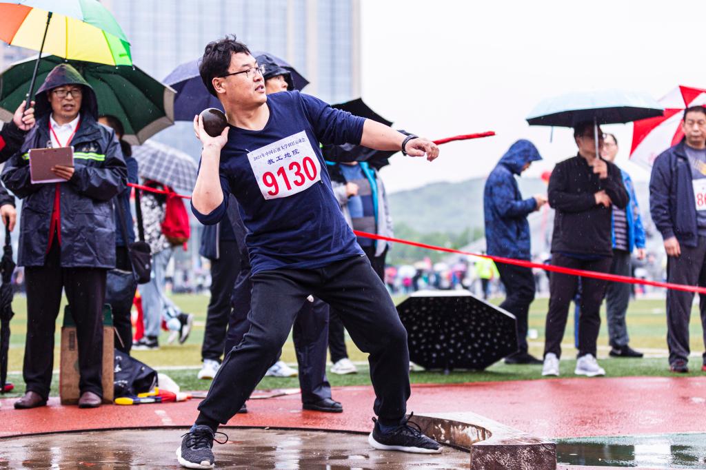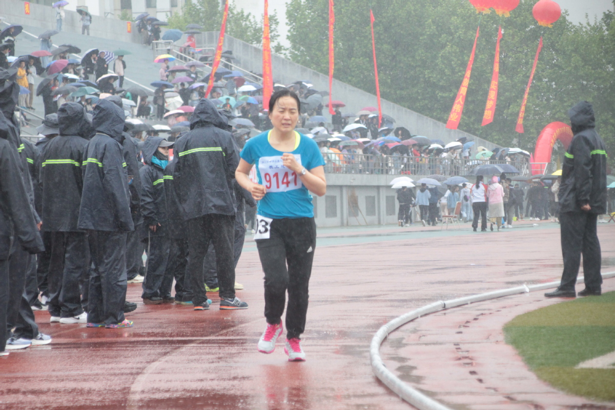 吴国忱老师在冒雨跑1500,可能是9名1500甲组年龄最大的,还拿下第五,本来是要出差的,在工会主席的力邀下放弃了出差,值得称赞!