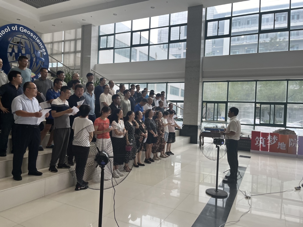 9月23日练习,这是人数相对多的一次,大家太忙了!开学初有1000多人的全国地质大赛,地质系、资源系很多老师在忙,后来测井系到杭州开测井大赛,再后来地球物理系在南京物探院有个地球物理大赛,9月份确实太忙,客观上说有一部分老师到上台还歌词不熟,不敢唱,导致整个音量还是有点小。