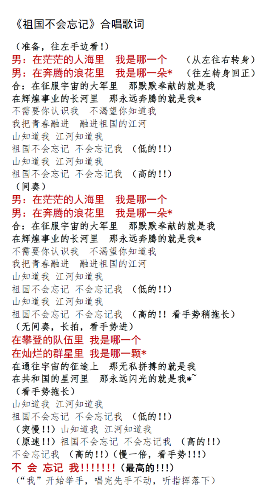 后记:本次大合唱圆满结束了,我们不禁要问,在茫茫的人海里,我是哪一个;在奔腾的浪花里,我是哪一朵。不需要你认识我,不渴望你知道我;我把青春融进,融进祖国的江河......让我们全院师生接续奋斗、顽强拼搏,一流学院不会忘记,伟大祖国不会忘记!在共和国75岁华诞来临之际,共同祝福学院的明天更美好!祖国的明天更好!