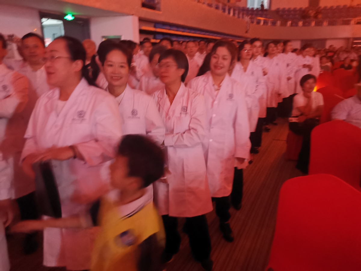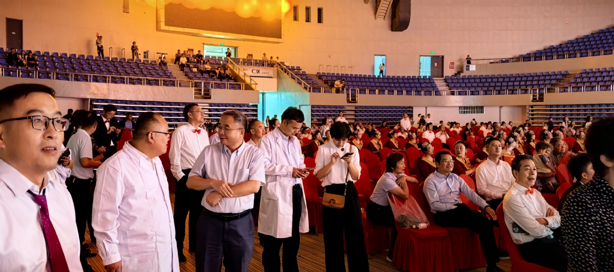 大合唱现场,大家都在期待最终成绩的公布!