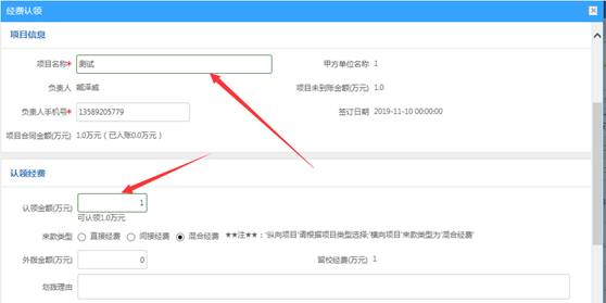 2、填写认领经费信息(图2、3、4)