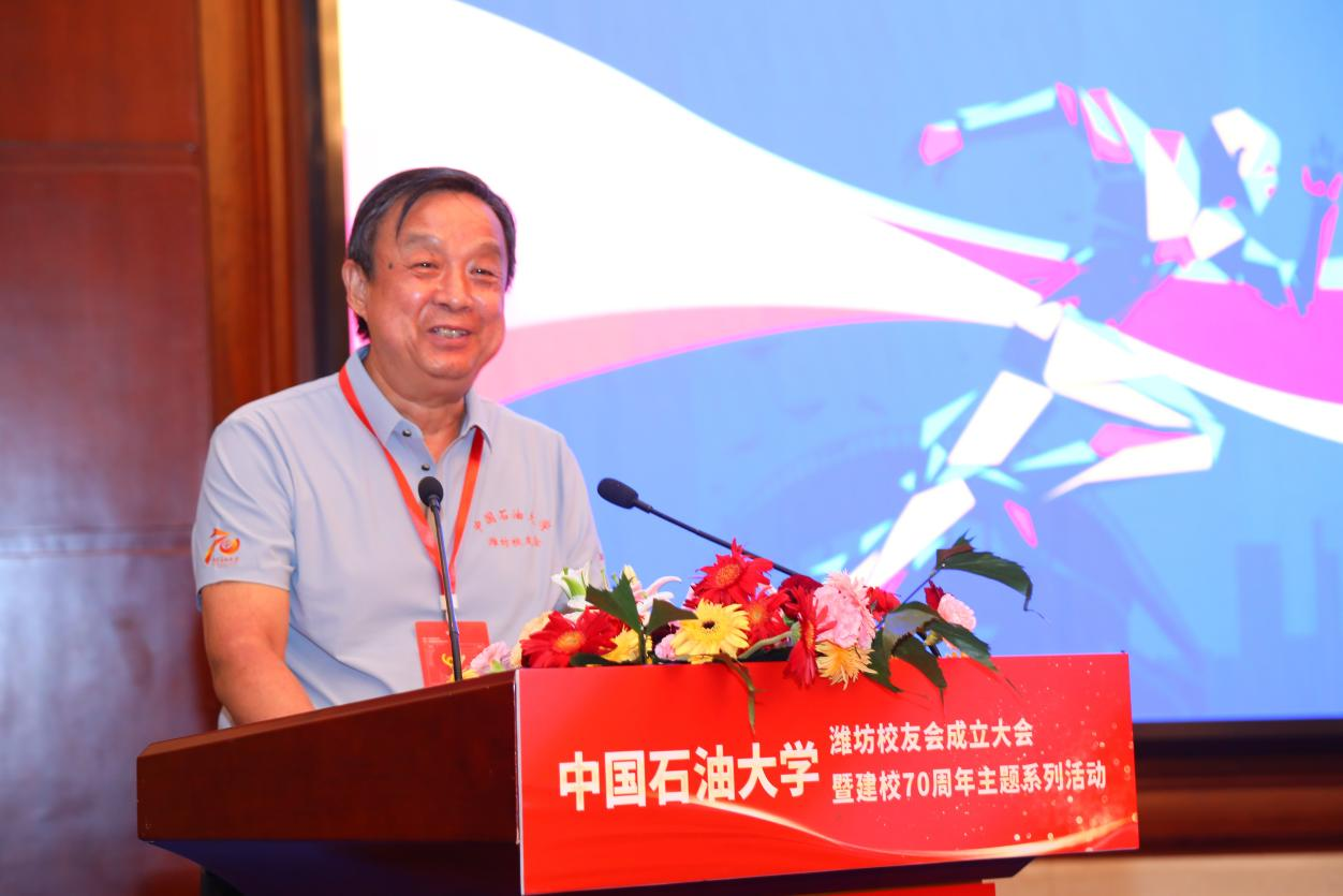 校庆旗传递活动后,举行潍坊校友会成立大会。马国顺代表学校为新当选的潍坊校友会会长尹玉国授牌。马国顺表示,多年来潍坊地区校友情系石大、心系母校,传承弘扬石大精神,为国家战略和区域发展提供了强有力的人才、智力和科技支撑,为母校赢得了荣誉。他对潍坊校友会发展提出三点希望:一是抢抓机遇,积极为母校引荐高层次人才,为人才强校战略提供重要支持;二是做好石大文化的传承与传播,提升学校的社会影响力和美誉度;三是增进多方合作,促进校友、单位、母校深度互动和协同发展。