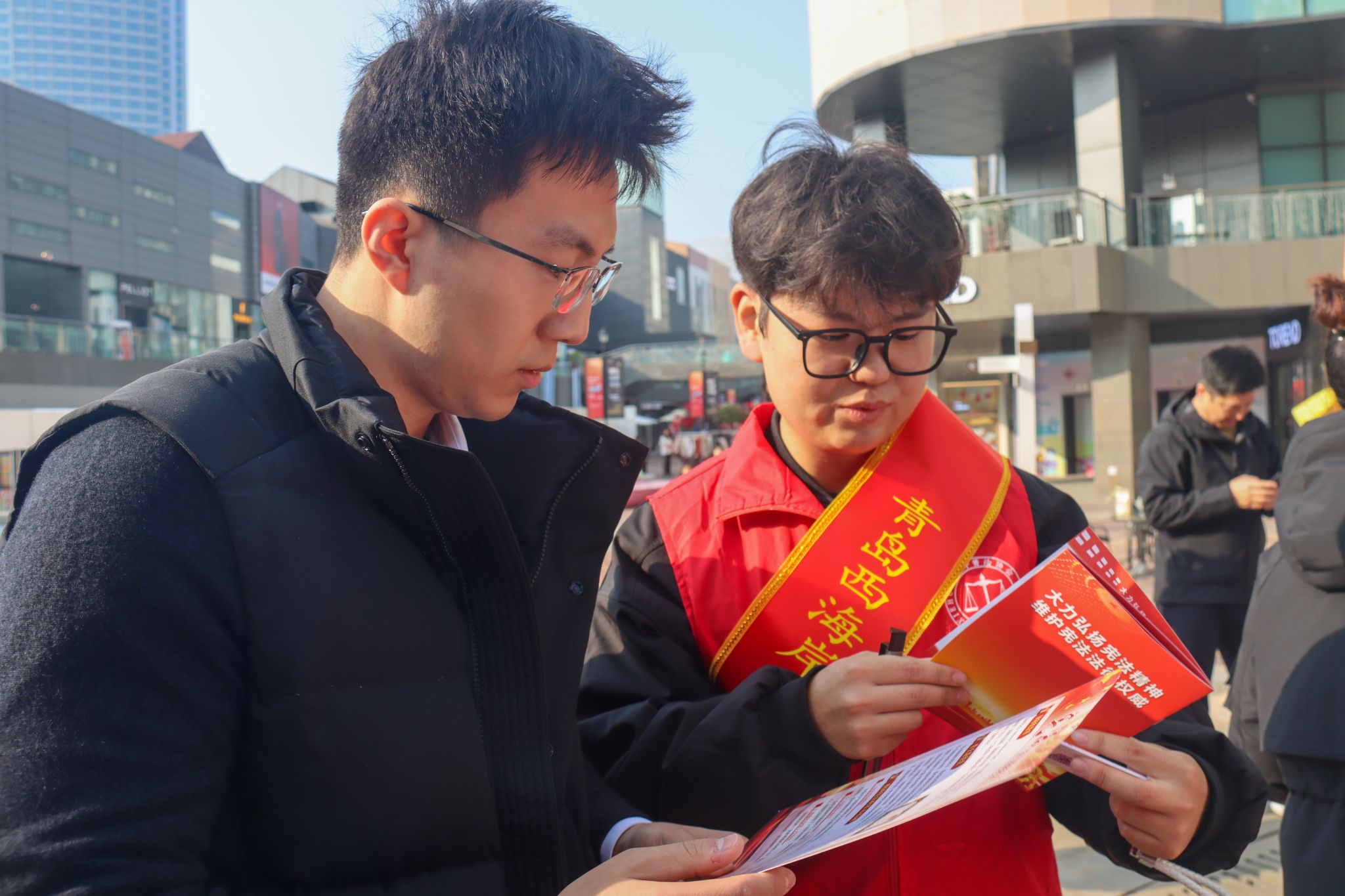 【本站讯】“设立国家宪法日,不仅是增加一个纪念日,更要使这一天成为全民的宪法‘深化日’,出生、上学、工作、退休……公民生命中的每个时刻都在宪法的保护之下。”在熙熙攘攘的青岛西海岸新区嘉年华广场上,我校志愿者正“边摆摊边普法”,向来往行人讲解起了与宪法有关的小常识。