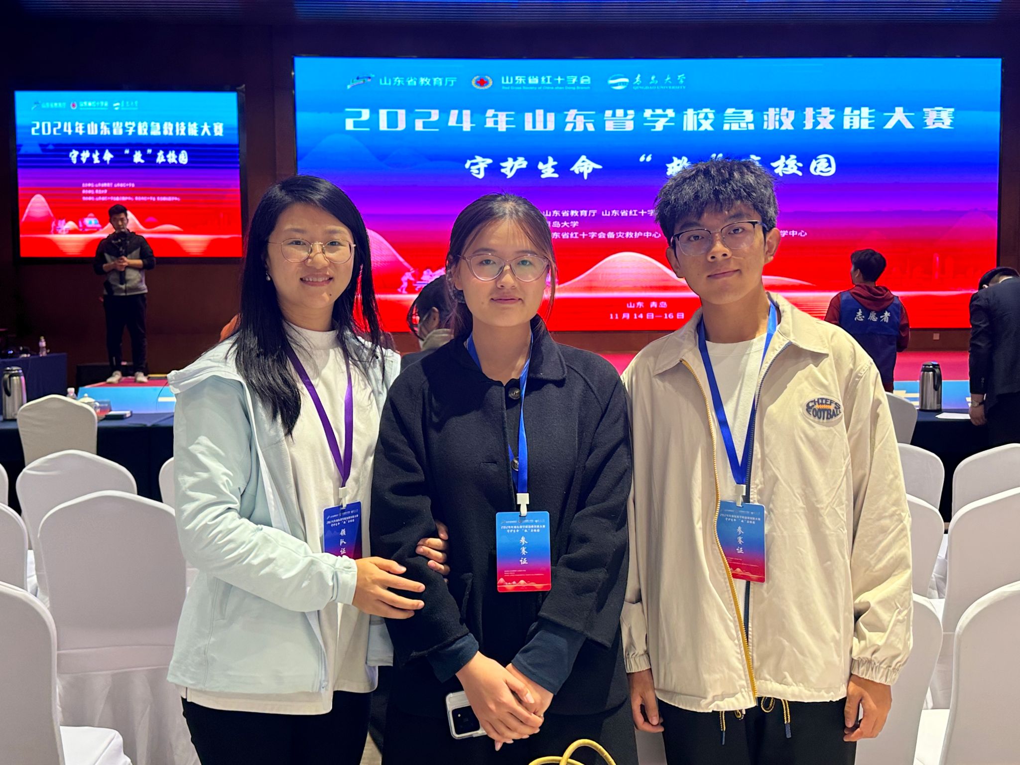 【本站讯】近日,山东省教育厅和山东省红十字会主办的2024年山东省学校急救技能大赛活动在青岛医学模拟中心举行,来自全省各地的110所高校代表队和64所中学代表队参赛,参赛人数394人。我校代表队在领队陈静的带领下参赛,并获得三等奖,充分展示了师生良好的急救教育素养。