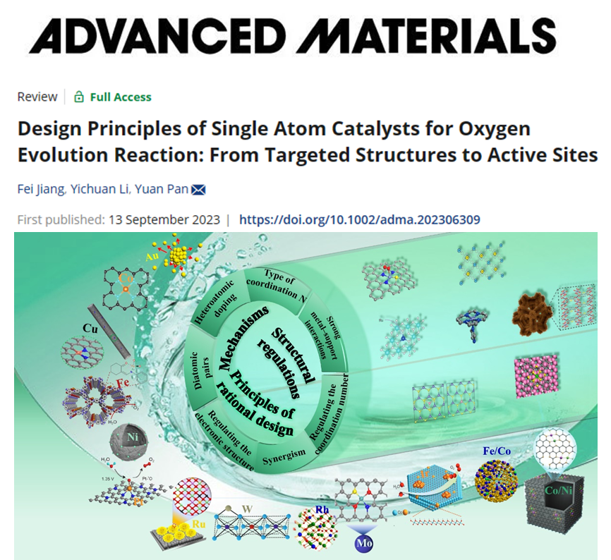 题为《用于电催化析氧反应单原子催化剂的理性设计原理:从靶向结构到活性位点》(Design Principles of Single Atom Catalysts for Oxygen Evolution Reaction: From Targeted Structures to Active Sites)的成果发表在国际材料领域顶级期刊Advanced Materials上,化学化工学院2021级硕士研究生姜菲为第一作者,潘原副教授为通讯作者。