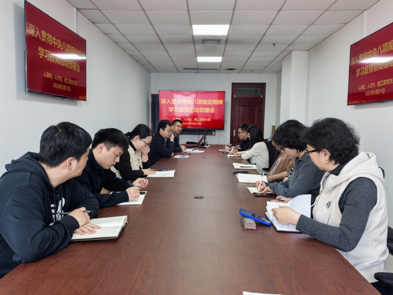 3月21日,人事人才教工部党支部召开支部党员大会,对深入贯彻中央八项规定精神学习教育进行部署安排。人事处副处长、党支部副书记邢清琨主持会议。
