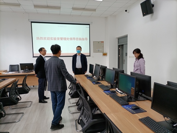 4月22日下午,实验室管理处副处长左利云带队来我院实验室进行现场考察,调研学院实验室现状和2023-2025实验室建设规划。外国语学院副院长张建科、实践教学服务中心主任张亮、办公室解忠刚以及实验室全体工作人员参加了此次调研。